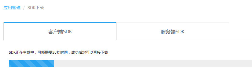 点击生成SDK,会开始生成专属SDK的过程,大概要等10-20秒左右,需要耐心等等。