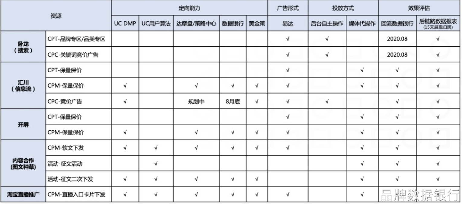 2、UC-卧龙品牌、UC-卧龙效果、UC-汇川广告于2020年8月21日接入数据银行,历史数据不做回补,新数据从8月21日开始回流~