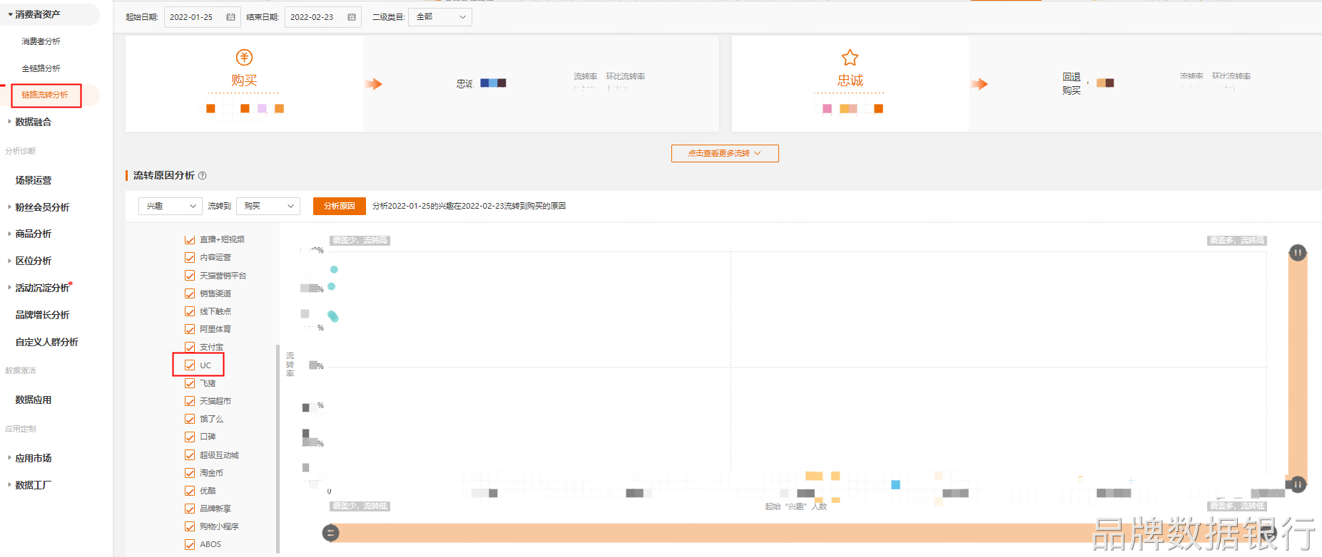 一级触点“UC”下的二级触点“UC-卧龙品牌”、“UC-卧龙效果”、“UC-汇川广告”作为品牌人群流转的原因