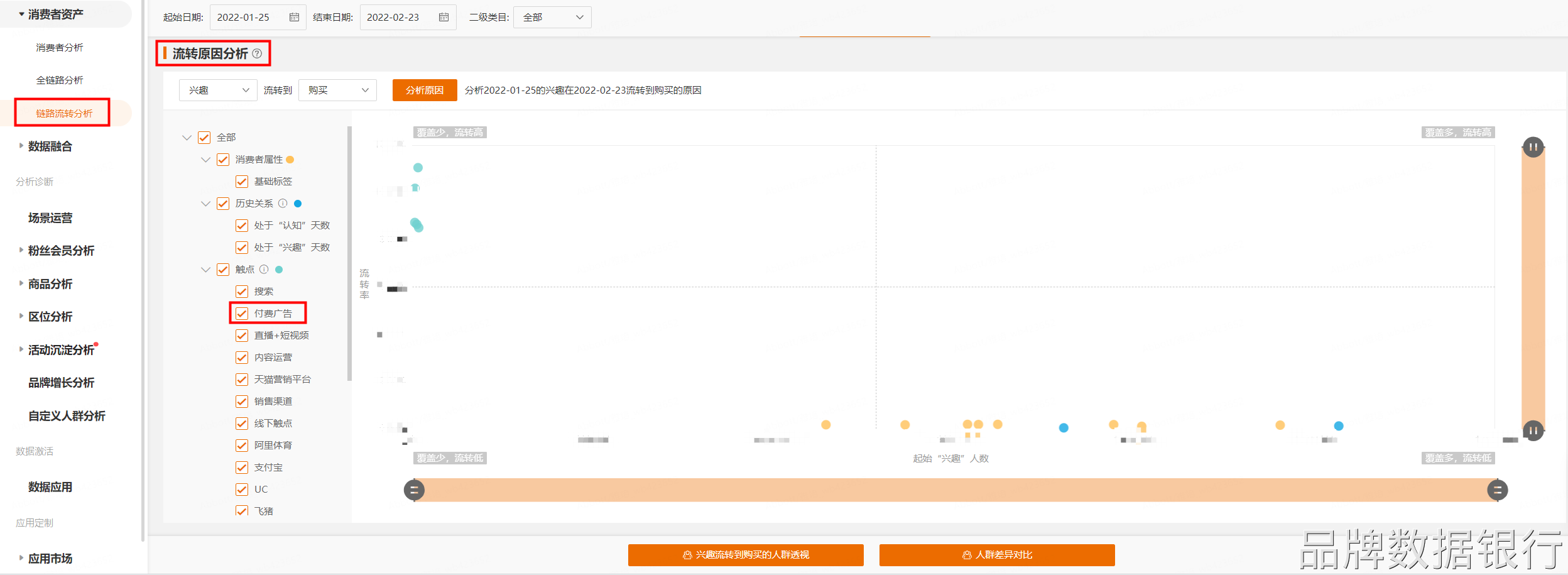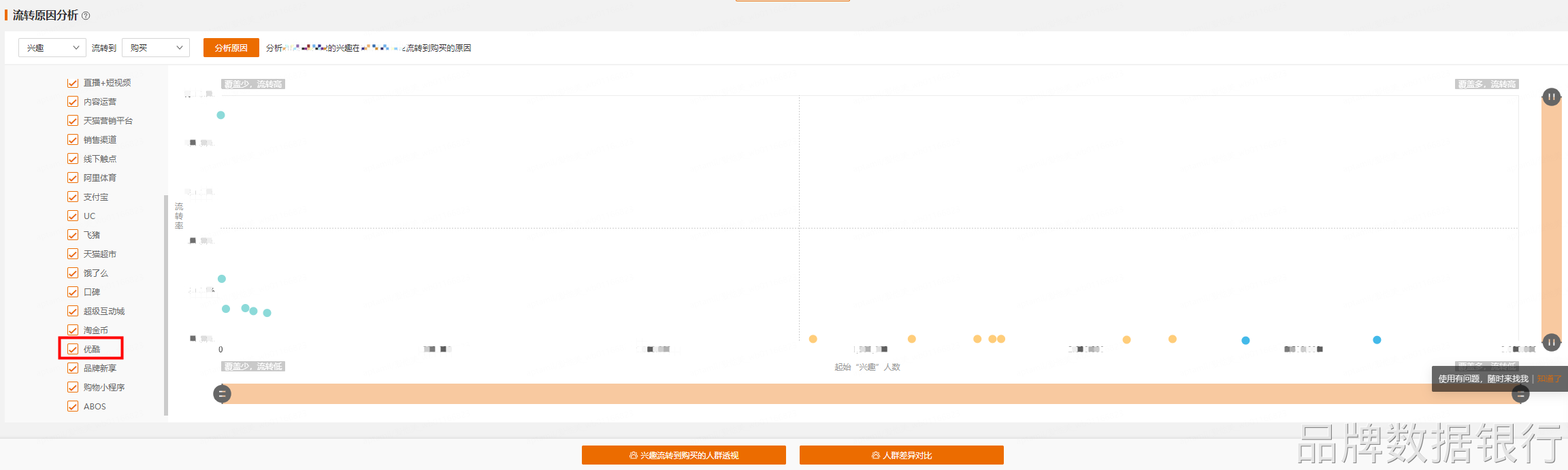 一级触点“付费广告”下的二级触点“优酷/优酷创新广告”作为品牌人群流转的原因