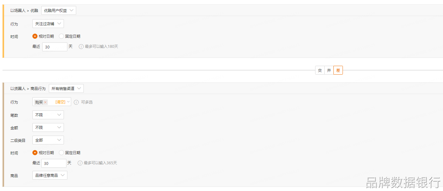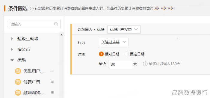以场圈人-优酷下支持指定时间范围来圈选“关注过店铺”的人群,进一步分析。