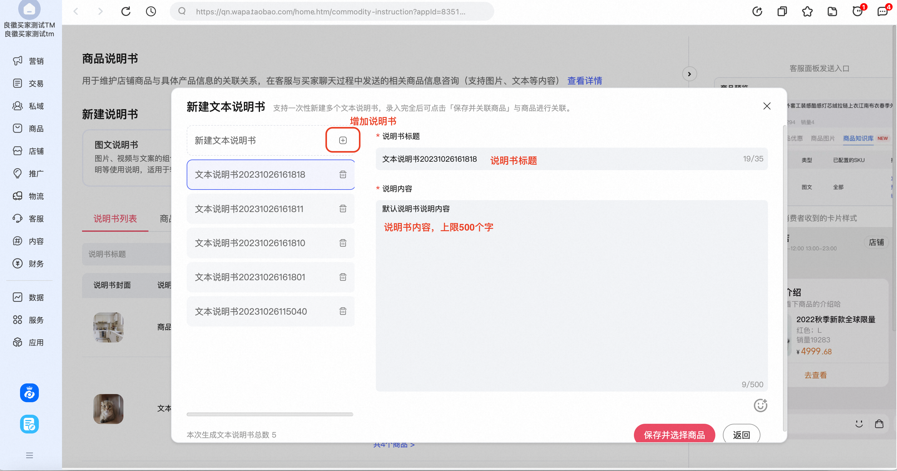 商品说明书是帮助商家用于维护店铺商品与具体产品信息的关联关系,商家可以在后台上传图文、视频等相关产品信息,便于客服与买家聊天过程咨询时发送,能大幅提升客服的接待效率及促进转化;